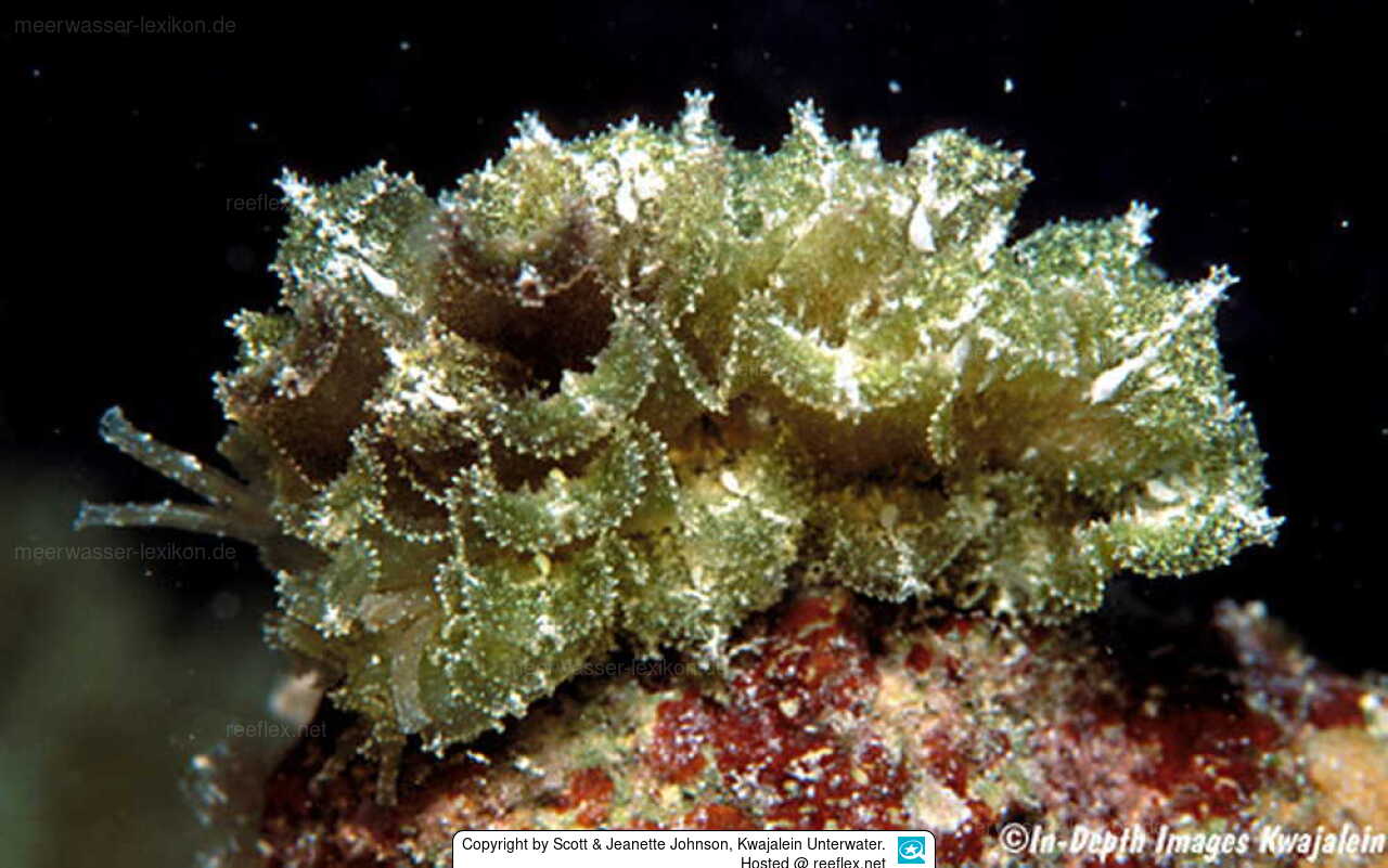 Polybranchia samanthae has broad, thin, leaf-like cerata with serrated edges. Color of Polybranchia samanthae variies from the green to a light brow. Cerata with finely papillate and often edged with white flecks. Head and rhinophores are tiped with white pigment.