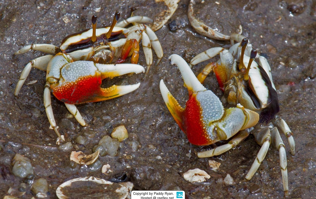 The most of fiddlers occur in mangroves or along the shore,estuarine, burrowing in mud.