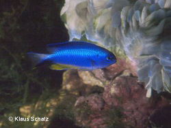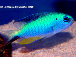 Andamanen-Demoiselles sind sehr neugierige und aufgeweckte Fische, die gerne und viel umherschwimmen. Ausserdem schweben Sie gerne vor der Scheibe und beobachten den eigentlichen Beobachter.